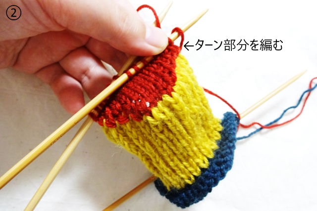 それでは、くつ下編みのパーツのサンプル制作テストの続きです。