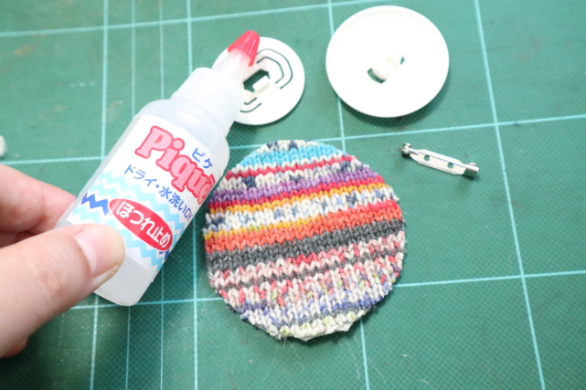 金具は、編地の厚さの関係で、クロバーさんのブローチ台を使用します。