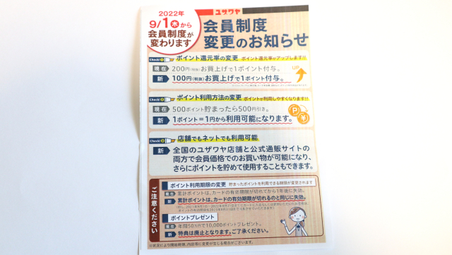 2022年9月からユザワヤの会員制度が変更になるということです